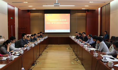 董偉弘書記作動員部署講話。他首先傳達了4月28日中輕集團“兩學一做”動員部署會議和集團公司領導重要講話指示精神,并結合《中國食品發酵工業研究院開展“學黨章黨規、學系列講話,做合格黨員”學習教育實施方案》作動員部署。董書記指出,開展“兩學一做”學習教育是貫徹全面從嚴治黨要求的重要部署,是加強黨的思想政治建設的重要實踐,是推動管黨治黨工作向基層延伸的重要舉措。我們要充分認識開展“兩學一做”學習教育的重大意義,認真學習、深刻領會習近平總書記重要指示精神和中央的部署要求,進一步增強責任感、使命感和緊迫感,增強開展“兩學一做”學習教育的自覺性和堅定性。董書記還就研究院開展“兩學一做”學習教育提出了具體要求:一是認真貫徹落實中央、國資委黨委、集團公司黨委關于開展“兩學一做”學習教育的總體部署要求,協調推進“四個全面”戰略布局,落實五大發展理念;二是認真落實研究院黨委對學習教育的工作部署和實施方案,抓住“基礎在學、關鍵在做、核心在改”三個重點,做好“圍繞專題學習討論,創新方式講黨課,召開黨支部專題組織生活會,開展民主評議黨員,立足崗位做貢獻,領導干部作表率”六個規定動作;三是研究院黨委要認真落實主體責任,加強對學習教育的組織領導。各支部要作為學習教育的主陣地,支部書記要切實負起責任,制定計劃,抓住重點,把好關口;四是全體黨員要圍繞研究院黨委下發的學習材料,認真學習黨章黨規,學習習近平總書記系列重要講話,真正樹立政治意識、大局意識、核心意識和看齊意識,做政治上的明白人;五是按照研究院黨委制定的2016年黨委工作要點,結合“兩學一做”學習教育,做好黨建各項工作。特別是近期要結合建黨95周年紀念活動,集中講好黨課,開展黨建工作交流和新黨員入黨宣誓等;六是研究院黨委要做好對中食營科公司黨支部和黨員開展“兩學一做”的組織領導,同時要結合老干部的實際情況,做好對老干部黨員的學習教育的組織工作;七是堅持兩手抓、雙促進,把學習教育的落腳點放在提質增效促發展上,把學習教育成果轉化為充分發揮黨支部戰斗堡壘和共產黨員先鋒模范作用,立足本職崗位,為研究院改革發展做貢獻的強大正能量。