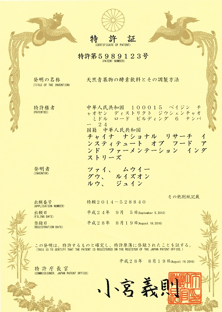 近日,我院功能肽產(chǎn)業(yè)化研發(fā)部一項(xiàng)PCT國(guó)際專利在進(jìn)入日本后獲得授權(quán),專利名稱:天然青果物の酵素飲料とその調(diào)製方法;日本專利(授權(quán))號(hào):特許第5989123號(hào)。此次獲得日本國(guó)際專利授權(quán),是功能肽產(chǎn)業(yè)化研發(fā)部在2015年獲得1項(xiàng)美國(guó)發(fā)明專利和1項(xiàng)日本發(fā)明專利后的第3項(xiàng)國(guó)際發(fā)明專利,標(biāo)志著我院功能肽研發(fā)技術(shù)及產(chǎn)品進(jìn)入國(guó)際市場(chǎng)的又一重要進(jìn)展。