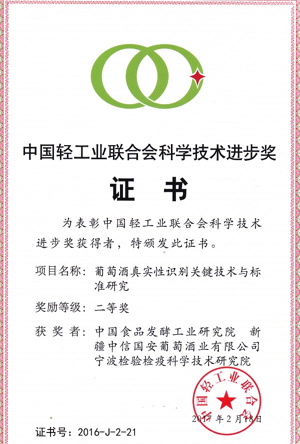 近日,我院“葡萄酒真實性識別關鍵技術與標準研究”項目成果獲得中國輕工業聯合會技術進步獎二等獎。本項成果針對葡萄酒市場面臨的葡萄酒摻水與產地虛假標注等產品真實性問題,及其引發的潛在食品安全風險,項目基于穩定同位素與無機元素快速分析技術,構建我國葡萄酒產品的同位素與無機元素數據庫,建立全汁和產地葡萄酒識別技術模型;借助標準化工作平臺,完善葡萄酒真實性監管標準體系,開展酒類檢測技術交流和培訓,并在相關生產企業或檢測機構開展技術模型應用驗證;實現產-學-研的快速轉化,從技術-標準-人才多方面搭建葡萄酒真實性監管技術保障體系。