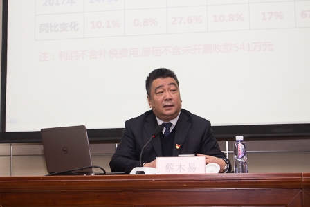 蔡木易總經(jīng)理在報告中指出,2017年,在集團(tuán)公司的領(lǐng)導(dǎo)下,我院深入學(xué)習(xí)貫徹黨的十九大精神和習(xí)近平新時代中國特色社會主義思想,積極推動科技創(chuàng)新,完善平臺建設(shè),深化行業(yè)服務(wù),加強人才隊伍建設(shè),拓展內(nèi)外交流,逐步提升自身能力建設(shè)水平,圓滿完成公司制改制,各項工作取得一定進(jìn)展,較好地完成了全年經(jīng)濟指標(biāo)。蔡木易總經(jīng)理在報告中重點分析了我院面臨的機遇和挑戰(zhàn),他指出,在食品行業(yè)增速低于國家總體經(jīng)濟發(fā)展速度的形勢下,2017年我院各科研業(yè)務(wù)部門以強化服務(wù)為抓手,不斷探索新的發(fā)展增長點,取得了突出成績,但我們必須保持清醒的頭腦,既不能“夜郎自大”也不能“妄自菲薄”,必須“認(rèn)清優(yōu)勢、找準(zhǔn)短板、精準(zhǔn)突破”。蔡總強調(diào),2018年我院首要的重點工作是根據(jù)集團(tuán)公司2018年考核方式,結(jié)合我院實際情況,統(tǒng)籌調(diào)整安排資金、科研、生產(chǎn)和經(jīng)營計劃,抓好指標(biāo)分解,確保完成集團(tuán)公司下達(dá)的年度任務(wù)指標(biāo);二是做好“十三五”重點項目建設(shè),落實“十三五”科技發(fā)展規(guī)劃各項工作,積極申報國家“十三五”科技計劃項目;三是加強人才梯隊建設(shè),全面落實“人才強院”戰(zhàn)略;四是全面推進(jìn)內(nèi)控體系建設(shè),建立健全內(nèi)部控制的監(jiān)督檢查制度,實現(xiàn)內(nèi)控管理體系有效實施;五是加強黨建工作和反腐倡廉,以黨的十九大精神和習(xí)近平新時代中國特色社會主義思想為指南,重點抓好十九大精神的學(xué)習(xí)貫徹工作,進(jìn)一步加強基層支部建設(shè),切實把黨建工作內(nèi)嵌到科研、經(jīng)營和生產(chǎn)工作之中,切實落實黨委、紀(jì)委在全面從嚴(yán)治黨中的主體監(jiān)督責(zé)任,抓好監(jiān)督執(zhí)紀(jì)“四種形態(tài)”,強化監(jiān)督執(zhí)紀(jì)問責(zé)。