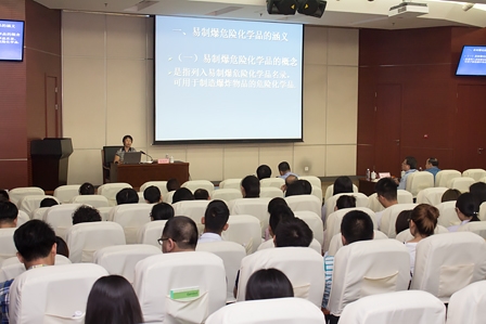 為進一步加強我院實驗室藥品安全管理工作,增強全體員工安全防范意識,結合全國安全生產月“生命至上、安全發展”主題活動,我院于6月5日下午舉辦了“實驗室危險化學品使用和管理”專項培訓會,邀請北京警察學院治安系張瑞萍教授重點對實驗室易制爆危險化學品和易制毒化學品的使用及管理進行了講解。院黨委書記董偉紅主持培訓會,院副總經理、實驗室藥品安全管理工作領導小組組長宋全厚和小組成員以及各研發部門有關人員共100余人參加了培訓。