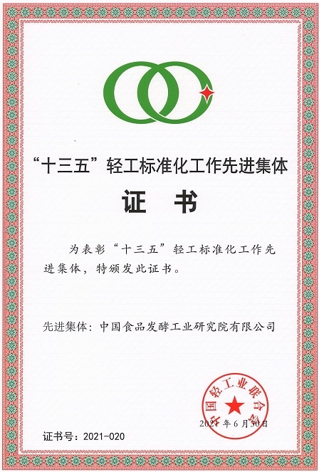 中國食品院榮獲“十三五”輕工標準化工作先進集體榮譽稱號