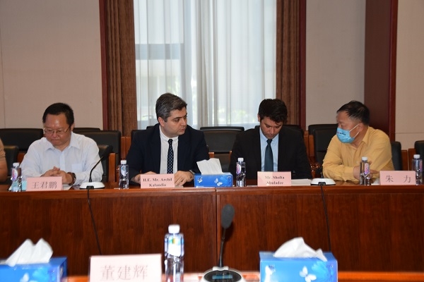 董建輝代表食品院歡迎各位來訪客人,就格魯吉亞葡萄酒在中國市場的推廣歷程及未來發展與Archil Kalandia大使進行了深入交流。他表示,食品院會與各方積極合作,共同推進格魯吉亞葡萄酒及格魯吉亞文化的在華推廣。中國食品院現擁有豐富的產業資源及雄厚的技術優勢,在葡萄酒與白酒的融合發展方面也會起到積極的推動作用。