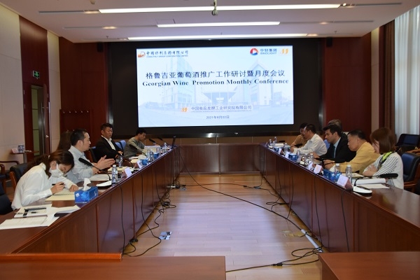 2021年8月2日,格魯吉亞駐華特命全權大使Archil Kalandia閣下、參贊Sholta Abuladze先生,中國首都旅游集團集采中心黨委王君鵬書記,北京北展科技發展(俄優品)有限公司戰明總經理,北京國際酒類交易所朱力總裁、盛開體育有限公司副總裁/體育旅游CEO鄭來、烏魯木齊歐亞匯貿易有限公司喬文東董事長等一行到訪中國食品發酵工業研究院有限公司,探討進一步拓展格魯吉亞葡萄酒在中國市場推廣,食品院董建輝總經理、魯軍副總經理、羅燕琴總經理助理和格魯吉亞葡萄酒(中國)推廣中心黃宇彤主任等接待代表團一行。