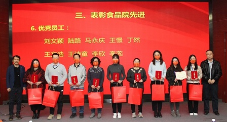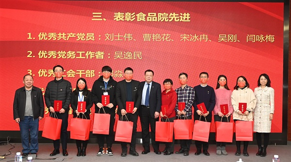 1月18日,食品院召開2022年度工作會暨總結表彰會,對2021年度先進集體、優秀黨員、優秀黨務工作者、優秀工會干部、優秀團干部、優秀團員、優秀員工和優秀研究生進行了表彰。