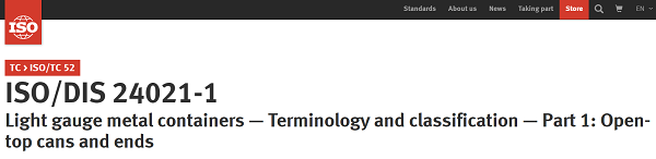 近日,由中國食品發酵工業研究院有限公司聯合國內相關企事業單位研制的ISO 24021-1“薄壁金屬容器-術語和分類-第1部分:開頂罐和蓋”和ISO 5099“薄壁金屬容器-易撕蓋和易開蓋-尺寸”兩項國際標準歷時2年,順利通過國際標準草案(DIS,Draft International Standard)投票。