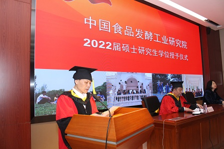 4月27日,中國食品發酵工業研究院隆重舉行2022屆碩士研究生畢業典禮暨學位授予儀式,院有關領導、研究生導師、學位評定委員會委員、研究生培養部門代表以及全體在讀研究生參加了學位授予儀式。