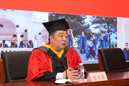 郭新光副總經理宣讀了中國食品院關于授予張宇凌等7位同學工學碩士學位的決定,保利中輕副總經理、中國食品院董事長、學位評定委員會主任蔡木易作畢業典禮致辭,并為畢業生頒發證書和“撥穗”。
