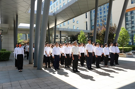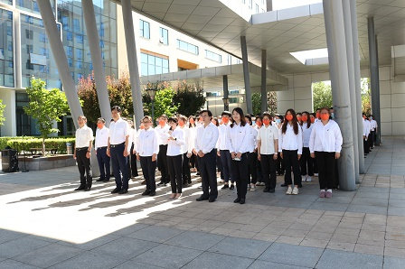7月15日,中國食品發酵工業研究院有限公司聯合中輕檢驗認證有限公司共同舉辦升保利司旗、唱司歌活動,中國食品院和中輕檢黨政班子成員、中層干部、員工代表共計120余人參加活動。
