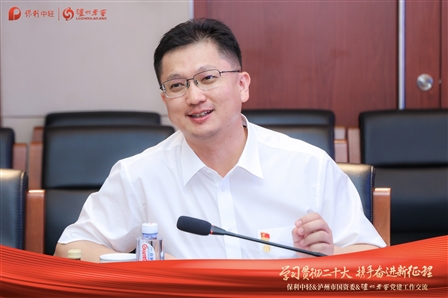 肖金龍對(duì)胡琳一行的到來表示歡迎,充分肯定了保利中輕與瀘州老窖股份前期開展業(yè)務(wù)協(xié)同合作取得的成績(jī),并對(duì)瀘州市國(guó)資委給予的大力支持表示感謝,表示保利中輕將學(xué)習(xí)借鑒瀘州市國(guó)資委打造全國(guó)黨建調(diào)研基地、瀘州老窖股份打造“踐行初心,釀造幸福”黨建品牌的經(jīng)驗(yàn)做法,進(jìn)一步提升保利中輕精益黨建工作水平。希望雙方以本次對(duì)接交流為新的起點(diǎn),深入探索、實(shí)踐黨建引領(lǐng)企業(yè)高質(zhì)量發(fā)展的創(chuàng)新舉措,通過強(qiáng)化雙方黨建協(xié)作與交流,進(jìn)一步深化雙方業(yè)務(wù)協(xié)同,實(shí)現(xiàn)共同發(fā)展.