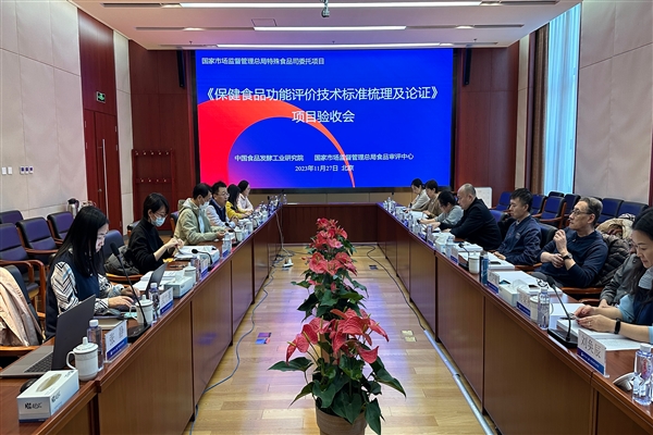 近日,受?chē)?guó)家市場(chǎng)監(jiān)督管理總局特殊食品安全監(jiān)督管理司委托,中國(guó)食品發(fā)酵工業(yè)研究院和國(guó)家市場(chǎng)監(jiān)督管理總局食品審評(píng)中心聯(lián)合承擔(dān)的“保健食品功能評(píng)價(jià)技術(shù)標(biāo)準(zhǔn)梳理及論證”項(xiàng)目驗(yàn)收會(huì)在北京順利召開(kāi)。國(guó)家市場(chǎng)監(jiān)督管理總局特殊食品安全監(jiān)督管理司宛超處長(zhǎng)、李亞琦三級(jí)調(diào)研員和標(biāo)準(zhǔn)技術(shù)管理司王曉燕一級(jí)調(diào)研員、北京大學(xué)李可基教授、中國(guó)衛(wèi)生監(jiān)督協(xié)會(huì)嚴(yán)衛(wèi)星研究員、中國(guó)疾病預(yù)防控制中心營(yíng)養(yǎng)與健康所丁剛強(qiáng)所長(zhǎng)、北京聯(lián)合大學(xué)張波教授、中國(guó)營(yíng)養(yǎng)保健食品協(xié)會(huì)厲梁秋執(zhí)行副會(huì)長(zhǎng)、國(guó)家食品安全風(fēng)險(xiǎn)評(píng)估中心劉珊研究員、國(guó)家標(biāo)準(zhǔn)技術(shù)審評(píng)中心劉奐辰副研究員和食品審評(píng)中心功能審評(píng)部司原琦副主任等多位專(zhuān)家出席本次會(huì)議。