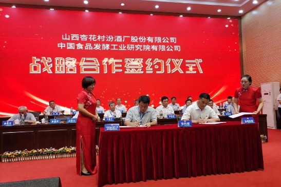 8月8日,食品院受邀與山西杏花村汾酒集團第一屆科技大會,食品院總經(jīng)理董建輝、原副院長張五九、副院長宋全厚、釀酒技術(shù)研究發(fā)展部主任王德良,中國酒業(yè)協(xié)會理事長王延才,江南大學校長、中國工程院院士陳堅,山西汾酒集團董事長李秋喜等白酒行業(yè)權(quán)威人士和龍頭企業(yè)家出席會議。