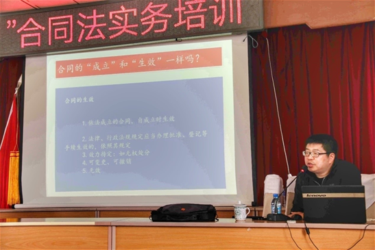 培訓(xùn)中,集團(tuán)法律事務(wù)部主管王佳龍緊密結(jié)合當(dāng)?shù)胤鲐氻椖亢娃r(nóng)業(yè)經(jīng)營實際業(yè)務(wù),通過以案說法的形式,用通俗易懂的語言對合同簽訂、履行、風(fēng)險防范過程中應(yīng)當(dāng)注意的問題進(jìn)行了分析,為鄉(xiāng)鎮(zhèn)干部上了一堂生動的法律課。集團(tuán)法律事務(wù)部主辦薛暉在培訓(xùn)前后向與會干部收集了與農(nóng)村生產(chǎn)生活密切相關(guān)的法律問題,為講座的針對性和普法效果的持續(xù)性打下基礎(chǔ)。