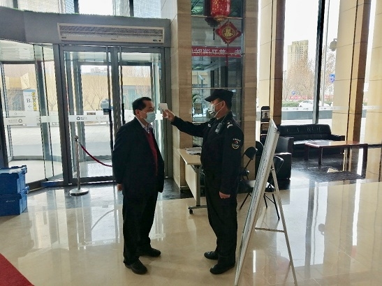 近日,隨著復工復產潮的來臨,疫情防控進入新階段。2月3日,中輕集團總經理郭建全檢查中輕大廈新冠病毒肺炎疫情防控工作。郭建全查看體溫檢測點和大廳情況,向值班人員詳細了解大廈內環境消毒、聯防聯控等防范措施的具體內容和落實情況,向值班值守人員表示慰問,叮囑大家值守的同時切實做好自我防護,以良好的身體和精神狀態投入到疫情防控工作中去。