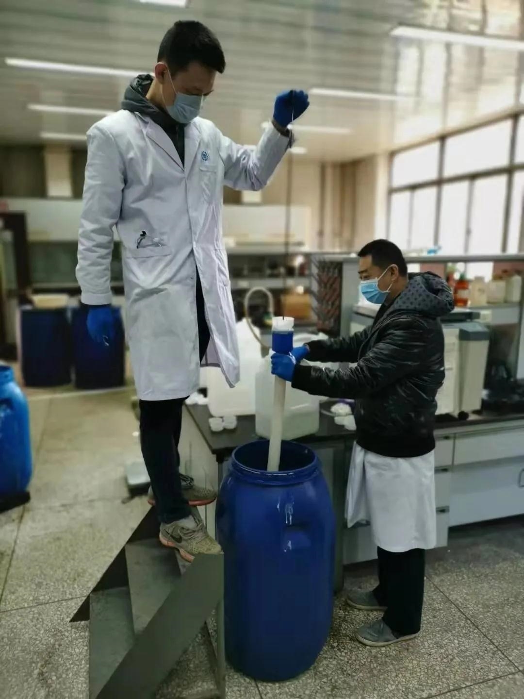 要為抗擊疫情貢獻(xiàn)力量!白艷云趕緊出門,但公共交通已經(jīng)停運(yùn)。怎么辦?騎車!從家里騎到實(shí)驗(yàn)室,白艷云騎行了40分鐘。顧不得雙腿的酸痛,白艷云和同事們開始投入到消毒劑原液的配置中。為了加快配置進(jìn)度,大家合力抬起近百公斤重的原料桶,進(jìn)行分裝調(diào)制。