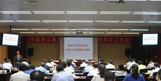 7月24日,中輕集團召開2020年年中工作會,總結上半年工作,分析當前形勢,研究部署下半年重點任務。中輕集團董事長、黨委書記張萬順傳達國資委和保利集團有關會議精神并做總結講話,總經理郭建全做了上半年工作報告。會議采取視頻會議的形式,保利集團戰略投資中心張旻部長,中輕集團領導班子、總部中層以上領導干部、各二級子公司黨政主要負責人等在主會場參加會議,各子公司在全國16個分會場共400余人參加會議。