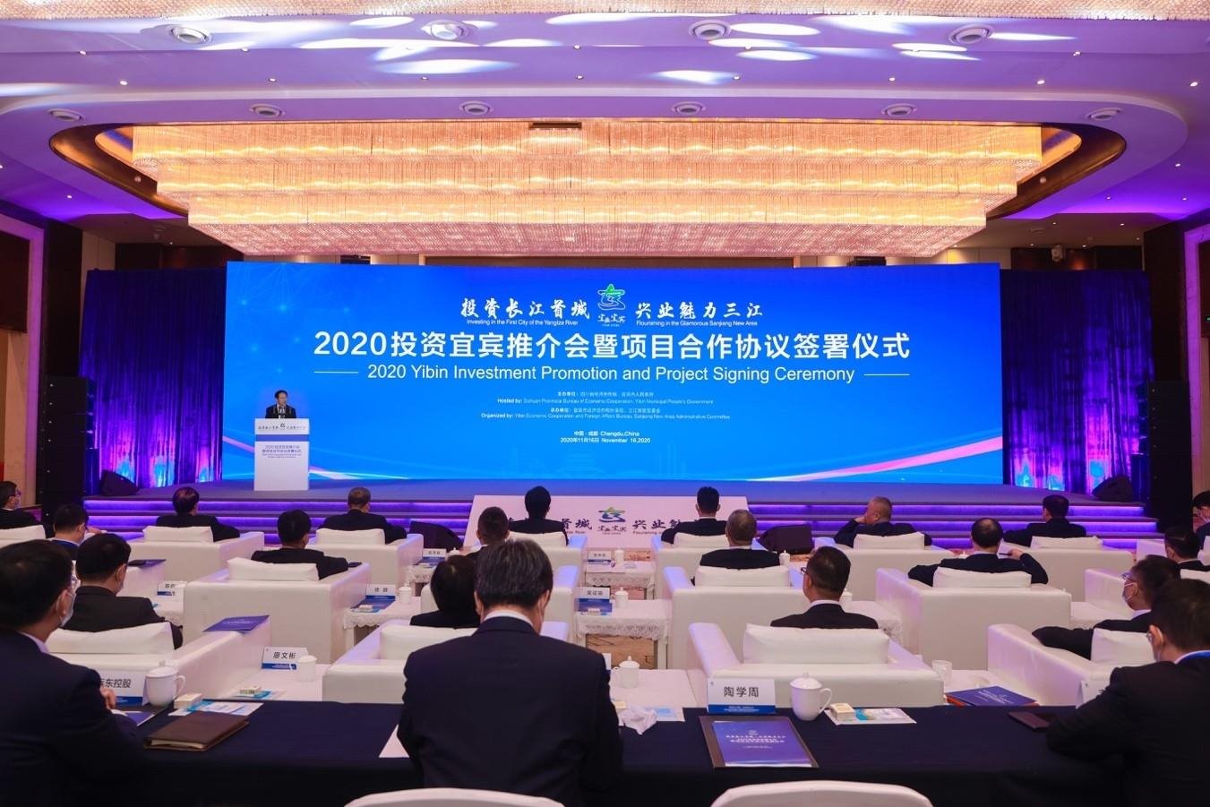 11月16日下午,“投資長江首城 興業魅力三江”2020投資宜賓推介會暨項目合作協議簽署儀式在成都舉行。