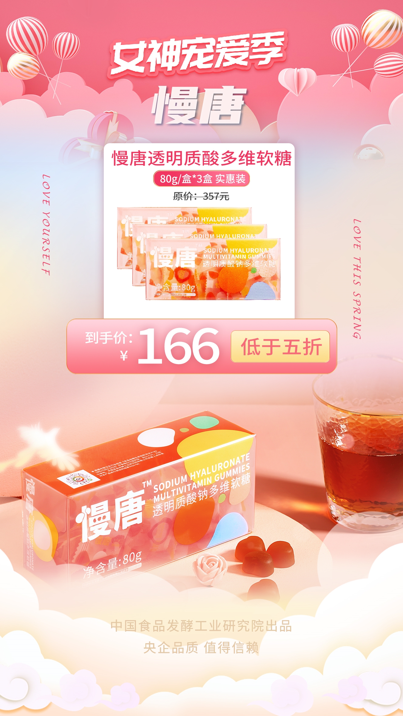 保利中輕所屬中國(guó)食品發(fā)酵工業(yè)研究院自主開(kāi)發(fā)終端產(chǎn)品“慢唐”透明質(zhì)酸鈉多維軟糖,能有效控制糖分,緩解皮膚老化,受到關(guān)注愛(ài)美、減肥人群的青睞。