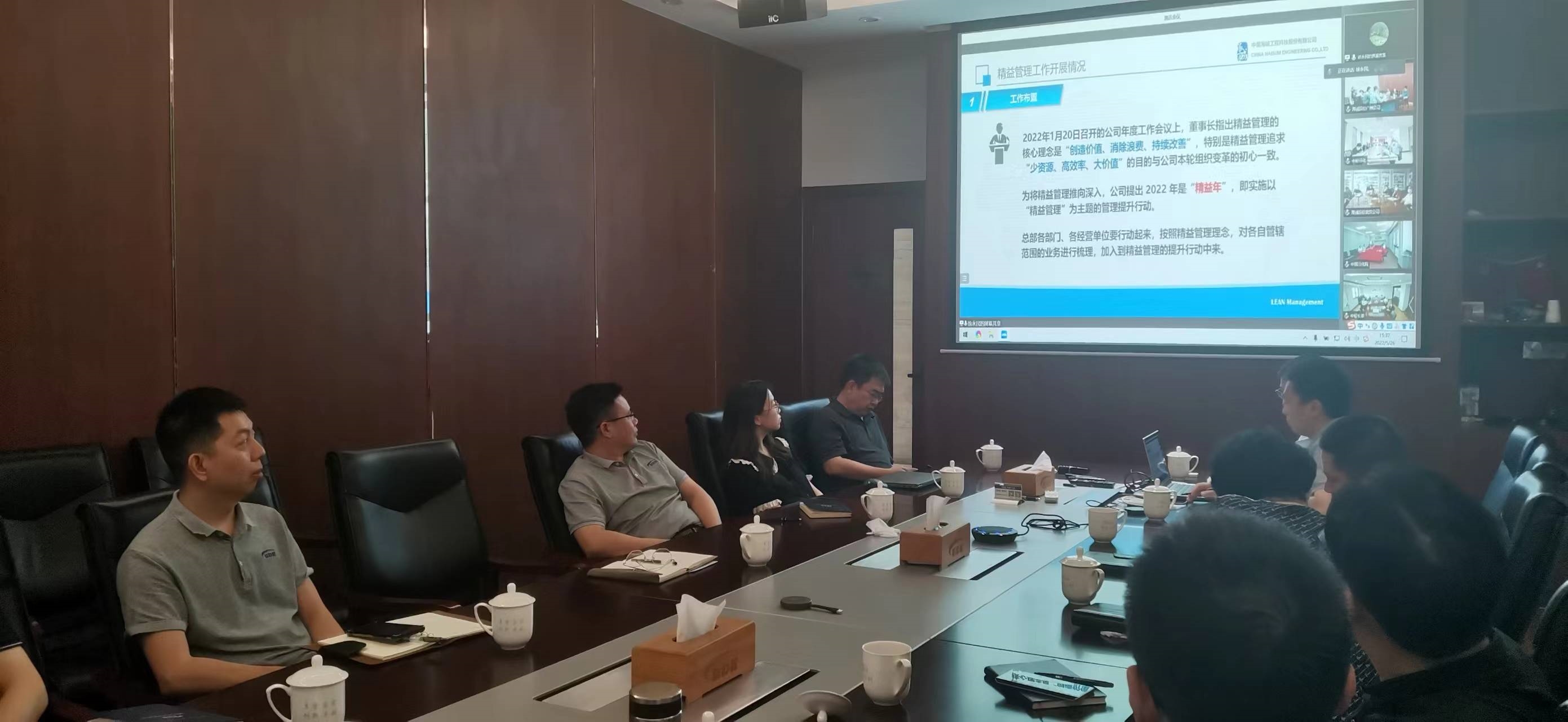 作為保利中輕致遠課題承擔單位之一,中國海誠在會上作了經驗分享。一是總體工作方面,緊抓“創造價值、消除浪費、持續改善”的精益精髓,將2022年設立為公司“精益年”,組織總部各部門、各子公司上下聯動全面推行精益管理。二是課題推進方面,課題選擇從實際工作需要出發,課題目標與企業“十四五”規劃目標結合,課題結果立足實現“降低成本、創造價值、提高效率等五方面可量化、可執行、可檢驗的成果。