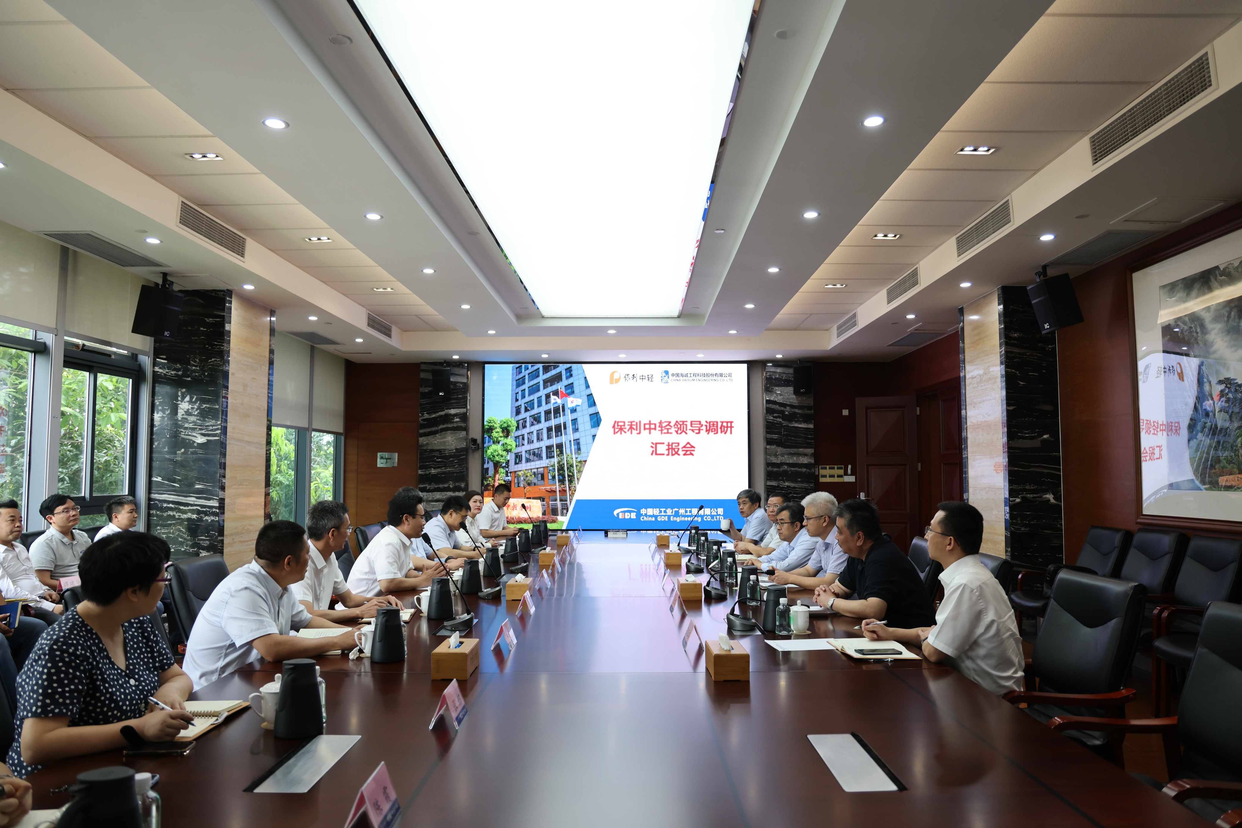 8月5日,保利集團(tuán)總經(jīng)理助理,保利中輕黨委書記、董事長安勝杰赴保利中輕所屬中國海誠廣州公司開展調(diào)研。保利中輕副總經(jīng)理姜浩,副總經(jīng)理、總會計師段趙清,副總經(jīng)理蔡木易,總工程師曹春昱,總經(jīng)濟(jì)師趙國昂等參加了調(diào)研活動。