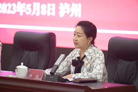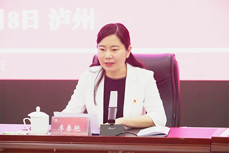 李春艷致歡迎辭,向?qū)W員簡要介紹瀘州整體情況和分院建設情況,并為培訓班授旗。