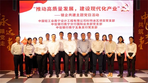 中國(guó)海誠(chéng)南寧公司科特迪瓦項(xiàng)目黨支部與中信銀行南寧分行國(guó)際業(yè)務(wù)部黨支部、中信銀行南寧五象支行黨支部開展銀企共建主題黨日活動(dòng)。