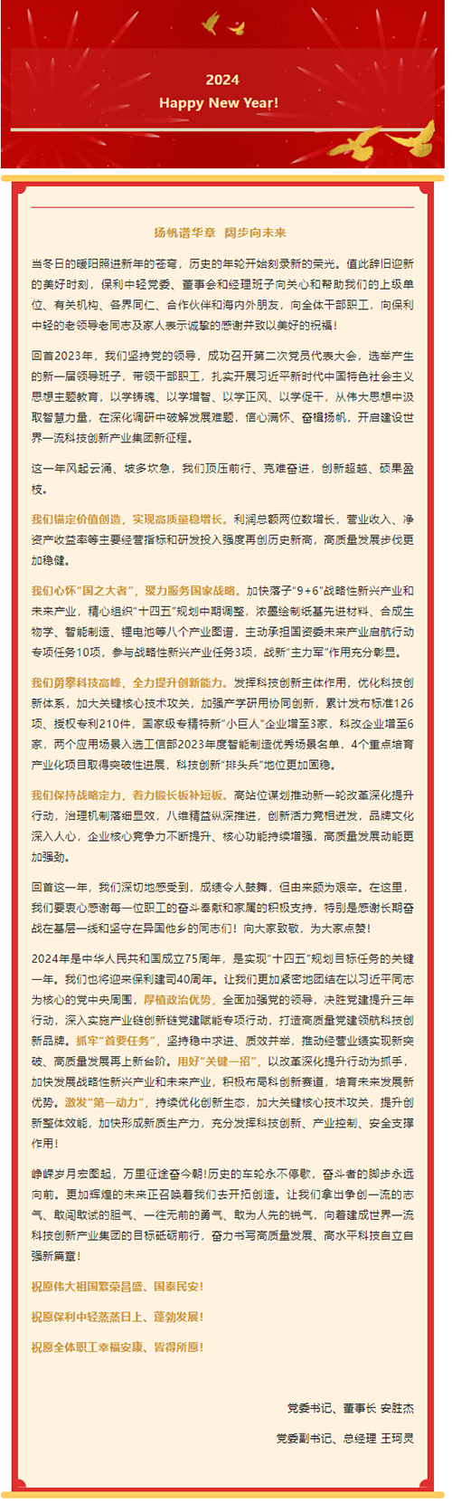 保利中輕2024年新年賀詞