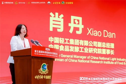 肖丹首先向出席大會的嘉賓表示熱烈歡迎,向此次會議承辦方安徽古井集團(tuán)有限責(zé)任公司的大力支持表示誠摯謝意。她表示,蒸餾酒產(chǎn)業(yè)憑借其深厚的歷史底蘊(yùn)和廣泛的市場需求,已成為現(xiàn)代經(jīng)濟(jì)發(fā)展的重要產(chǎn)業(yè)之一。聚焦“創(chuàng)新、質(zhì)優(yōu)”的新質(zhì)生產(chǎn)力成為白酒行業(yè)高質(zhì)量發(fā)展的新動能。中國食品院將與行業(yè)企業(yè)一道,共同推動傳統(tǒng)釀酒行業(yè)向數(shù)字化、智能化、綠色化轉(zhuǎn)型升級,助力國際蒸餾酒產(chǎn)業(yè)高質(zhì)量發(fā)展。