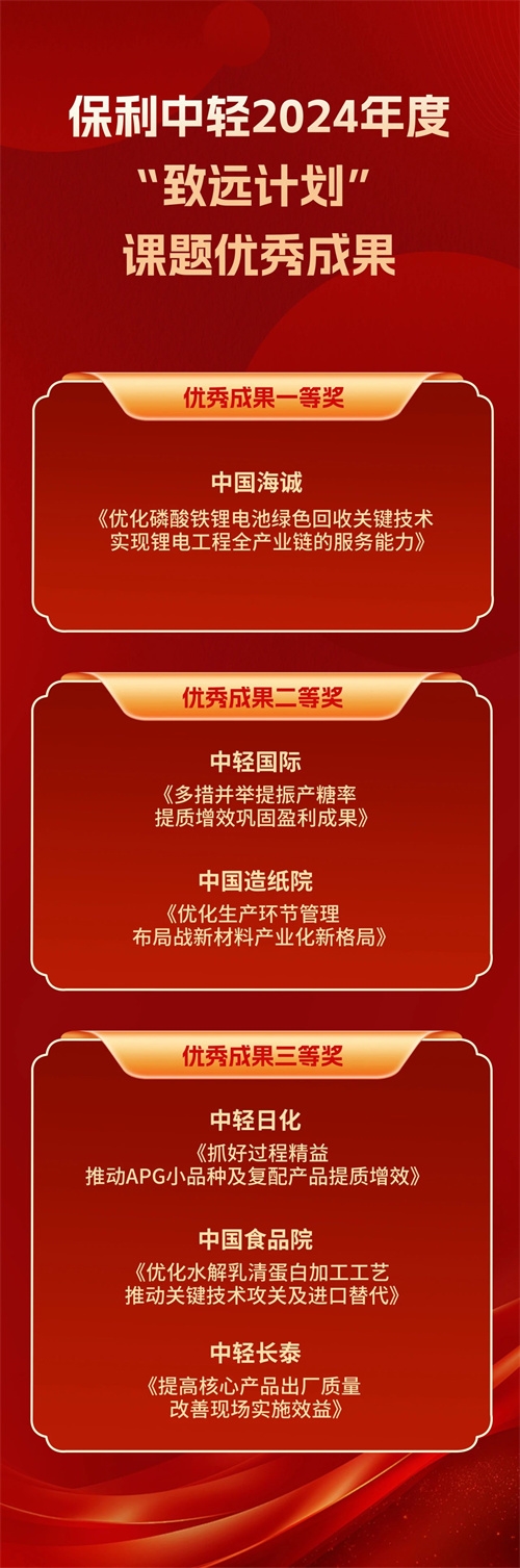 會(huì)議還表彰了保利中輕2024年度先進(jìn)集體和先進(jìn)生產(chǎn)工作者,2024年度“致遠(yuǎn)計(jì)劃”優(yōu)秀課題成果。