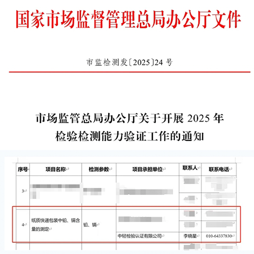 近日,保利中輕所屬中輕檢驗正式獲得國家市場監督管理總局批準,針對“紙質快遞包裝中鉛、鎘含量的測定”這一環保指標,組織實施國家級能力驗證項目,開展檢驗檢測能力驗證工作,為快遞包裝行業綠色低碳轉型提供堅實技術支撐。