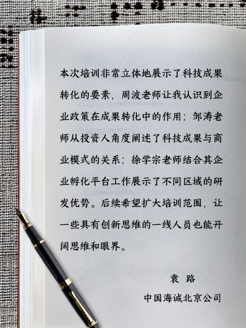 活動(dòng)特邀科技成果轉(zhuǎn)化領(lǐng)域資深專家圍繞“國資大院大所成果轉(zhuǎn)化實(shí)踐與案例解析”“科技需求分析與資本化運(yùn)作”“央國企技術(shù)轉(zhuǎn)移激勵(lì)機(jī)制”等進(jìn)行專題課程,深度解讀大院大所作價(jià)入股、成果許可的典型案例,系統(tǒng)講授技術(shù)需求挖掘、資本市場(chǎng)運(yùn)作等實(shí)戰(zhàn)技能,強(qiáng)化學(xué)員在技術(shù)轉(zhuǎn)移、市場(chǎng)對(duì)接及創(chuàng)新管理中的綜合應(yīng)用能力。