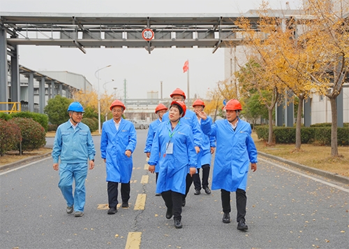 宣講報告會結束后,孫麗霞深入一線實地調研中輕日化本部廠區、中輕紹化廠區,詳細了解生產裝置運行等情況。孫麗霞在聽取匯報后,對中輕日化近年來取得的成績給予肯定,就保利中輕及中輕日化如何深化拓展科技創新優勢,多措并舉激發科技創新動力與活力,提出三點要求:一是要強化科創主體地位,完善研發體系與投入機制。二是要強化人才引領驅動,建強科技人才隊伍。三是要強化全面從嚴治黨,營造風清氣正、干事創業良好氛圍。