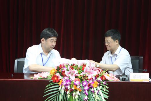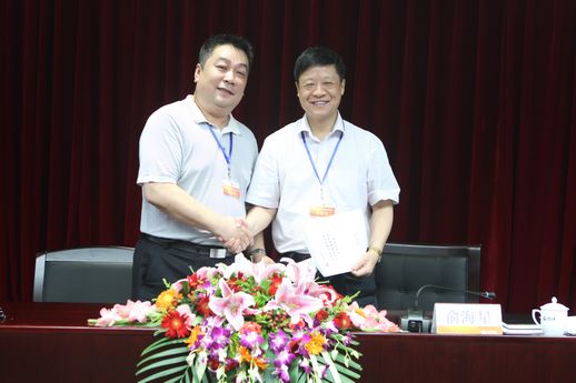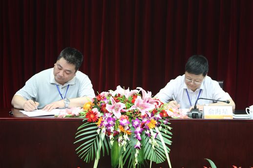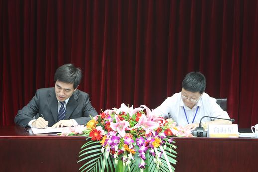 集團公司總經理俞海星與食品發酵院院長蔡木易簽訂任務合同書