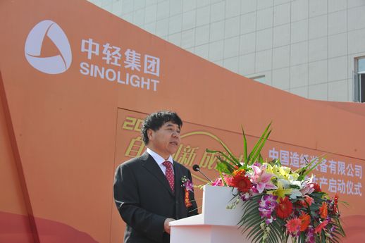 2012年10月23日,中國(guó)造紙裝備有限公司在其河北永清基地隆重舉行了以“自主創(chuàng)新 成就未來(lái)”為主題的“永清基地生產(chǎn)啟動(dòng)儀式暨技術(shù)研討會(huì)”,向業(yè)界宣告了作為中國(guó)高端造紙裝備技術(shù)引領(lǐng)者正式亮相。國(guó)務(wù)院國(guó)資委監(jiān)事會(huì)主席尋寰中、中國(guó)輕工業(yè)聯(lián)合會(huì)副會(huì)長(zhǎng)錢桂敬、廊坊市常務(wù)副市長(zhǎng)蔣洪江、國(guó)家工信部規(guī)劃司副司長(zhǎng)兼廊坊市副市長(zhǎng)顧強(qiáng)、國(guó)家發(fā)改委產(chǎn)業(yè)協(xié)調(diào)司輕紡處處長(zhǎng)曲美玉、中國(guó)工程院院士兼華南理工大學(xué)教授陳克復(fù)、中國(guó)造紙學(xué)會(huì)理事長(zhǎng)陳學(xué)忠等出席了啟動(dòng)儀式。集團(tuán)公司董事長(zhǎng)陳鄂生、總經(jīng)理俞海星、副總經(jīng)理馬思一、曹振雷出席了啟動(dòng)儀式。