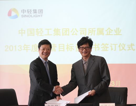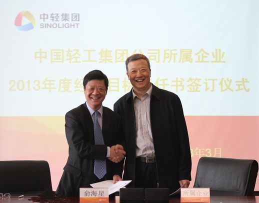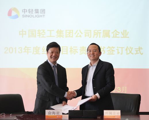 俞海星總經理與中輕對外公司總經理王向陽簽訂目標責任書