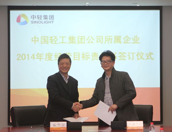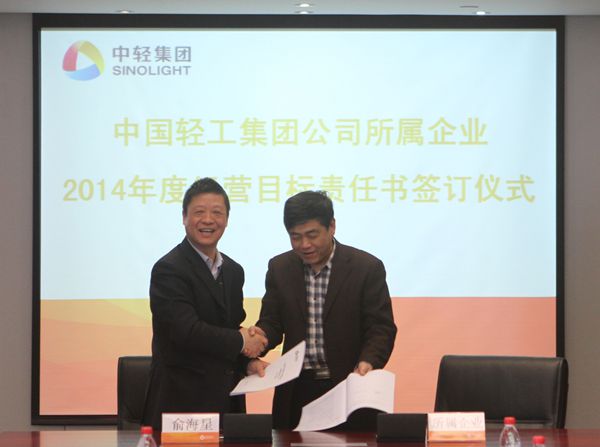 集團(tuán)公司總經(jīng)理俞海星與中輕物產(chǎn)公司總經(jīng)理錢小林簽訂經(jīng)營(yíng)目標(biāo)責(zé)任書