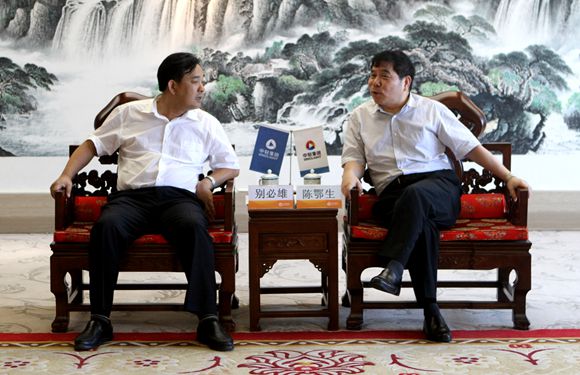 8月8日,中輕集團(tuán)黨委書(shū)記、董事長(zhǎng)陳鄂生在中輕大廈會(huì)見(jiàn)了荊門(mén)市委書(shū)記別必雄一行。