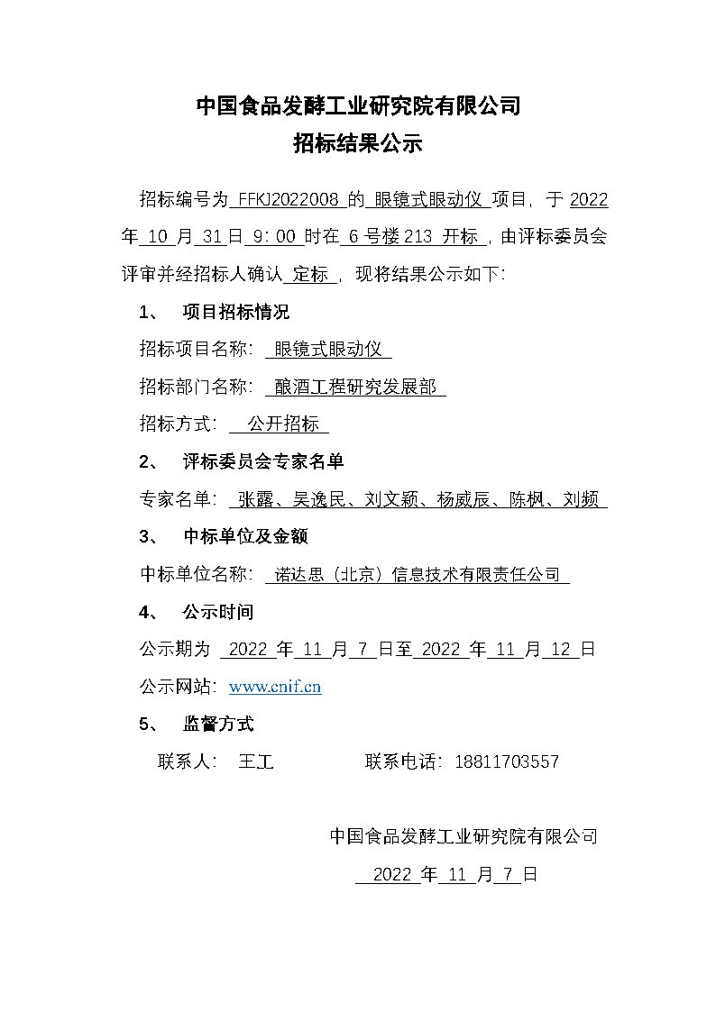 招標結果公示——眼鏡式眼動儀(招標編號:FFKJ2022008)