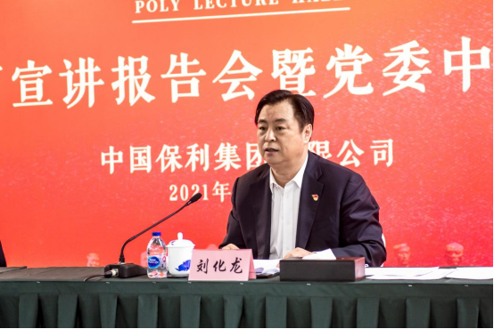 劉化龍在主持報告會時指出,開展黨史學習教育是黨中央因時因勢做出的重大決策,保利集團要自覺把思想和行動統一到習近平總書記重要講話精神和黨中央重大決策部署上來,統一到國資委黨委黨史學習教育部署上來,認真抓好落實。郝鵬書記在國資委暨中央企業黨史學習教育動員部署會上對中央企業黨史學習教育提出的要求,推動保利集團黨史學習教育工作取得實效。