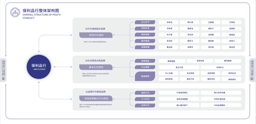《保利品行-保利集團(tuán)行為手冊(cè)》搭建卓越行為識(shí)別體系框架,明晰了全體保利人的卓越行為倡導(dǎo),以共同行為準(zhǔn)則、基本禮儀規(guī)范、關(guān)鍵品牌觸點(diǎn)行為支撐品行之樹(shù),規(guī)范全體保利人的知與行。