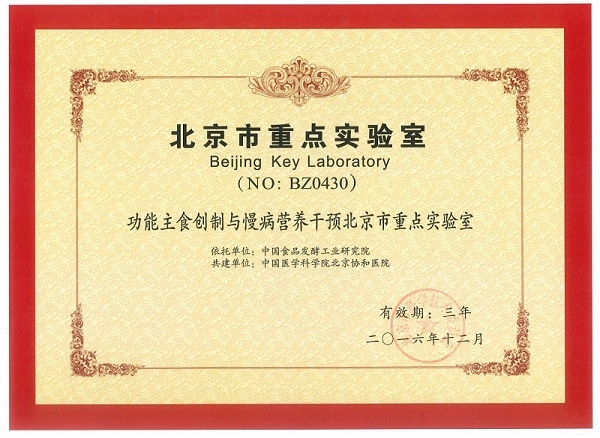 實驗室由中國食品發酵工業研究院與北京協和醫院共同合作建立,圍繞食品質量安全和慢病問題,旨在構建“原料安全、制造安全、營養安全”的基礎研究和應用技術體系,實現主食營養干預,為慢病防控提供營養解決方案,為企業提供技術支持服務。實驗室在食品原料安全和功能因子研究、功能主食安全制造與核心裝備創制、功能主食安全評價與臨床應用以及營養安全研究與作用機制等領域,取得了重大突破,尤其是在新食品原料的安全性評估以及物性數據庫、功能因子的安全性制備以及活性穩態保存與靶向遞送、慢病人群膳食模型、營養基因組學與腸道微生態調控機理等方向處于行業領先水平,填補了多項國內空白。此外,實驗室創新性地提出了“功能食品主食化”的理念,創制了適用于不同人群的營養功能主食(米、面、粥、代餐包),建立了功能主食與營養干預技術平臺。