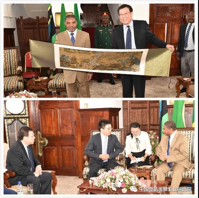 2019年9月10日,桑給巴爾總統謝因會見了中國駐桑給巴爾總領館總領事謝小武和食品院黨委書記董偉紅一行。謝因總統回顧了中桑傳統友誼,對中國政府長期以來對桑給巴爾政府和人民的無私援助表示衷心感謝,對食品院在培訓過程中的全力付出表示高度贊賞,對培訓所取得的成果表示感謝,并表示桑給巴爾政府將繼續支持食品院在當地開展培訓活動。謝因總統與董偉紅書記互贈了禮物,加深了中桑雙方的深厚友誼。桑給巴爾ZBC電視臺、《每日新聞》等當地新聞媒體對此進行了專題報道。
