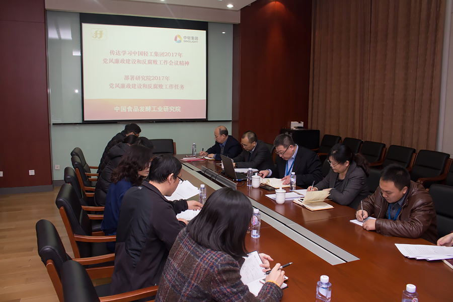 董偉弘書記首先傳達了集團公司2017年度工作會議和集團公司2017年度黨風廉政建設和反腐敗工作會議有關精神,并對我院2017年黨風廉政建設和反腐敗工作進行了具體部署。董書記指出,2017年黨委和紀委工作一是要積極落實集團黨委、紀委的部署,把學習貫徹習近平總書記在十八屆中央紀委七次全會上的重要講話和十八屆中央紀委七次全會精神以及集團公司黨風廉政建設和反腐敗工作會議精神作為當前和今后一個時期的重要政治任務;二是要依據集團公司2017年黨委和紀委工作部署,制定并落實食品院黨委和紀委2017年工作要點,為做好全年黨建工作提供政治、思想和組織保證;三是要提前做好深入學習貫徹黨的十九大會議精神的準備工作,落實好黨中央安排的學習教育活動;四是要配合做好集團公司即將開展的對直屬企業的巡視工作,認真學習有關文件,提前做好相關準備;五是做好中央企業黨的十九大代表的推薦工作,集團公司3月底4月初將召開黨代會落實推選工作,我院參會的黨代表要提前安排好工作,確保能夠準時參會;六是要求各支部要制定好全年工作計劃,抓好自身工作的落實。要積極鼓勵青年科研員工向黨組織靠攏,對本支部發展對象、入黨積極分子、提交入黨申請書申請的員工等做到心中有數。每一名黨員都要樹立起黨員意識,切實做到骨干應該是黨員,黨員一定是骨干;七是要求團委要向團員青年傳達會議精神,組織學習貫徹習近平總書記重要講話及集團公司會議精神,制定團委年度工作要點,真正起到后備軍的作用。董書記最后強調,抓好黨建工作總的落腳點是要推動研究院科研生產經營工作的發展,確保全年各項任務目標的完成,將黨建工作的強大動力轉換成研究院改革發展的核心競爭力、綜合實力和可持續發展能力。要求全體黨員干部要一馬當先,扛責任,挑重擔,出業績,為推動研究院又好又快發展做出新貢獻。