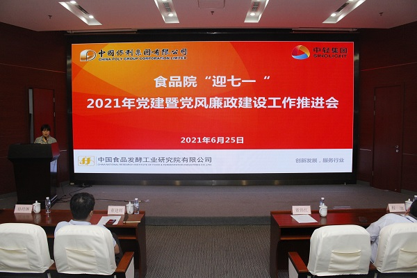 6月25日,中國食品院黨委召開“迎七一”2021年黨建暨黨風廉政建設工作推進會議,黨委書記董偉紅、總經理董建輝、食品院黨政領導班子成員、各部門主任、全體黨員和中食公司黨政領導班子成員參加。
