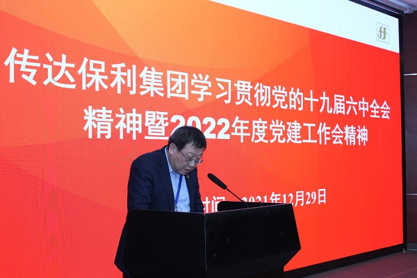 黨委書記董偉紅傳達了保利集團學習貫徹黨的十九屆六中全會精神暨2022年度黨建工作會和黨委書記、董事長劉化龍在會上做的重要講話精神,并對貫徹落實《保利集團“固本強基、品質先鋒”黨建提升工程三年(2022-2024年)行動方案》做出了部署安排。